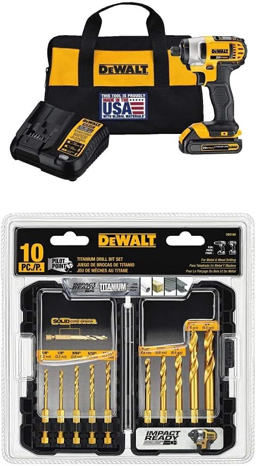 Dewalt Dcf885c1 20v Max 1 4 Impact Driver Kit With Dewalt Titanium Drill Bit Set 10 Piece Impact Ready Dd5160 Amazon Com